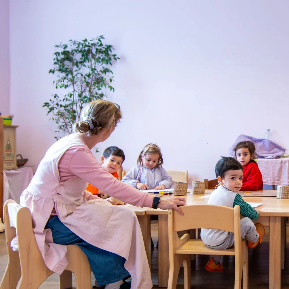 Il Giardino d'Infanzia "Intorno al Melo" permette al bambino di apprendere attraverso attività artigianali ed artistiche facilmente imitabili: la preparazione del pane, l'acquarello, il modellaggio della cera d'api, l'utilizzo del telaio e il disegno. La forte immaginazione del bambino viene nutrita ogni giorno con il racconto di fiabe e filastrocche.