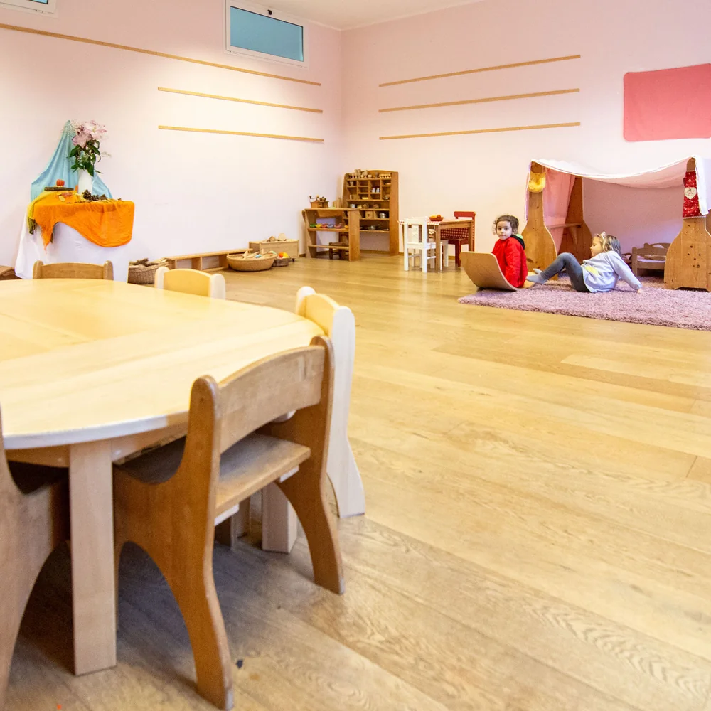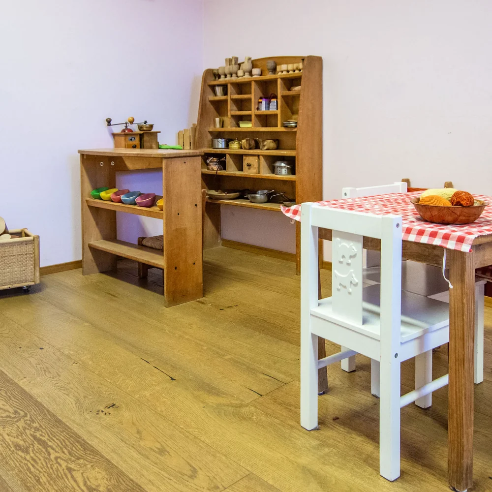 Grande importanza viene data al gioco libero, attraverso il quale il bambino può sperimentare sé stesso in libertà di movimento, relazionandosi con l'ambiente circostante e con gli altri bambini. Vengono proposti giochi semplici e oggetti in materiali naturali affinché la creatività possa essere stimolata.